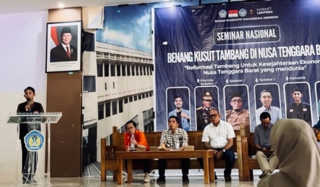Mataram | Badan Eksekutif Mahasiswa UNDIKMA menggelar Seminar Nasional tentang Benang Kusut Tambang di NTB; Reformasi Tambang Untuk Kesejahteraan Ekonomi Nusa Tenggara Barat di Gedung Handayani, Sabtu (11/10/2025).