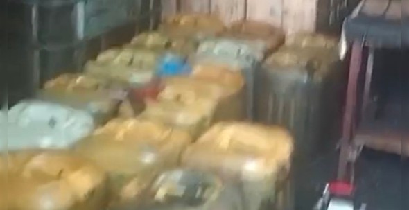 Narasumber berita menjelaskan “BBM Solar subsidi jenis disimpan di dalam Gudang dimasukkan puluhan Jerigen, diduga bahan bakar minyak (BBM) Solar didapatkan dari SPBU Sekitar. Senin /08/25).