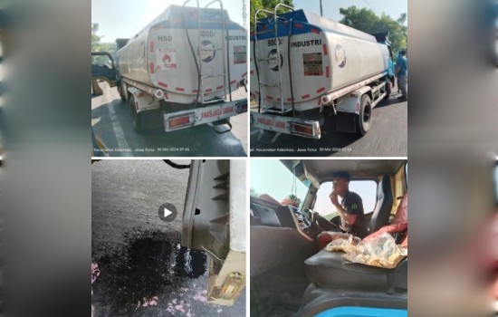Tim awak media yang sedang melintas menuju pintu masuk gerbang tol kebomas-surabaya mencium aroma bbm jenis solar yang bercecer di sepanjang jalan pintu masuk menuju gerbang tol kebomas, alhasil tim mendapati ceceran BBM jenis solar tersebut berasal dari sebuah truck tangki BBM industri berlogo PT.Putra Energi Niaga (PEN) dengan nopol K 9984 C yang sedang berhenti sebelum pintu masuk gerbang tol.